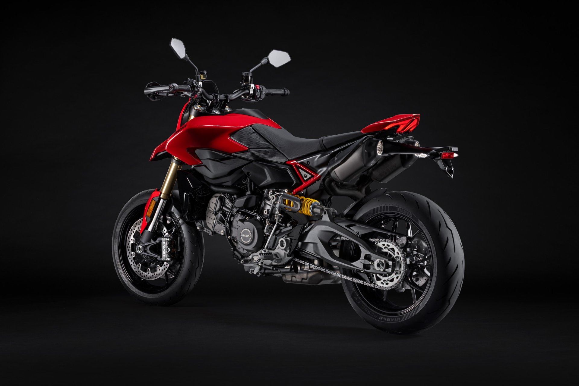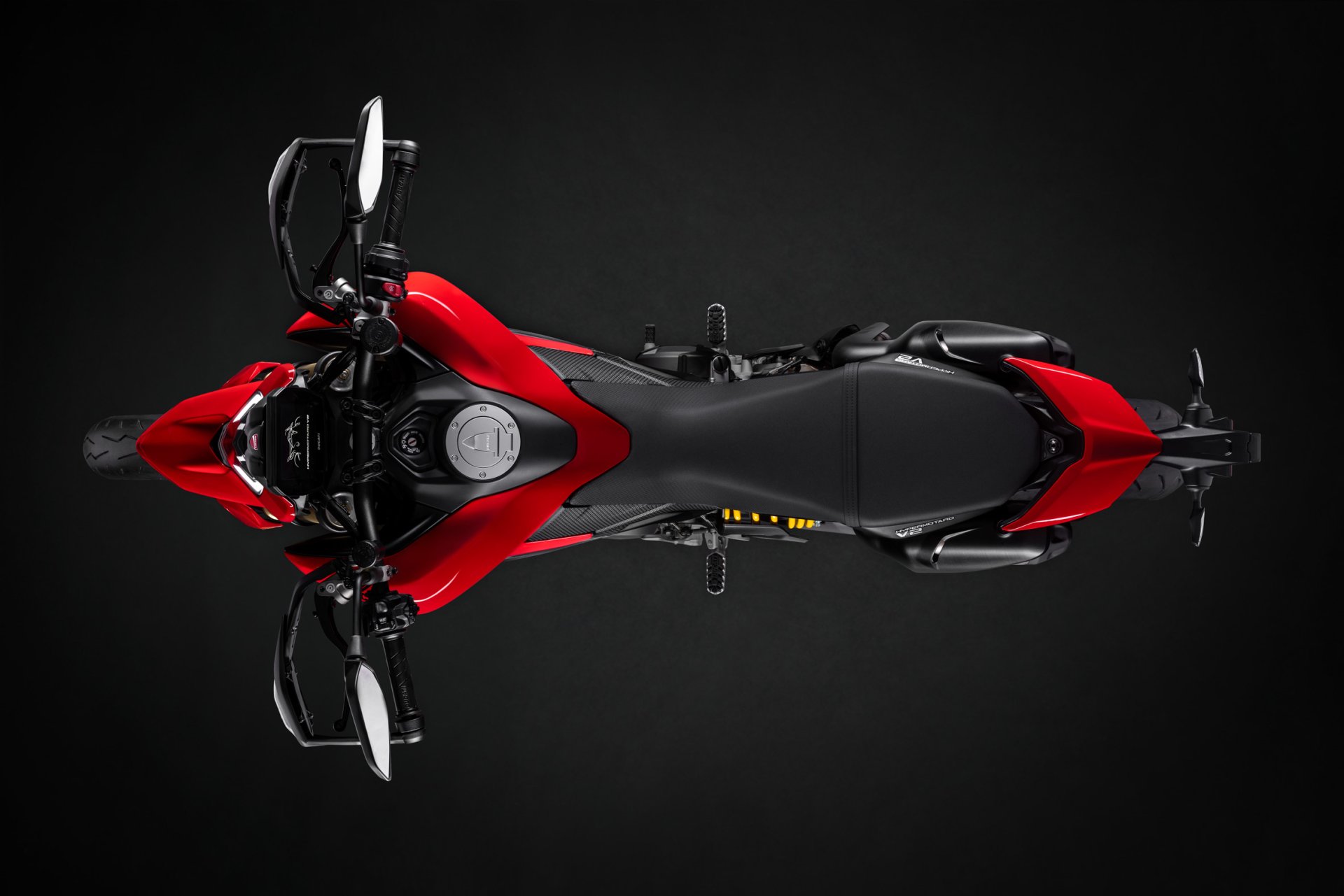 O DNA da nova Hypermotard tem origem no primeiro protótipo apresentado na EICMA 2005, distinguido como “Best in Show”. Elementos marcantes dessa verdadeira referência foram herdados para preservar o seu carácter único, destacando-se o farol dianteiro com o inconfundível “bico”, a cobertura do depósito com dupla asa, o escape duplo sob o assento que deixa o quadro trellis à vista e a luz traseira flutuante. Linhas limpas e agressivas que continuam, ainda hoje, a despertar emoção e admiração, fiéis ao espírito da Ducati.